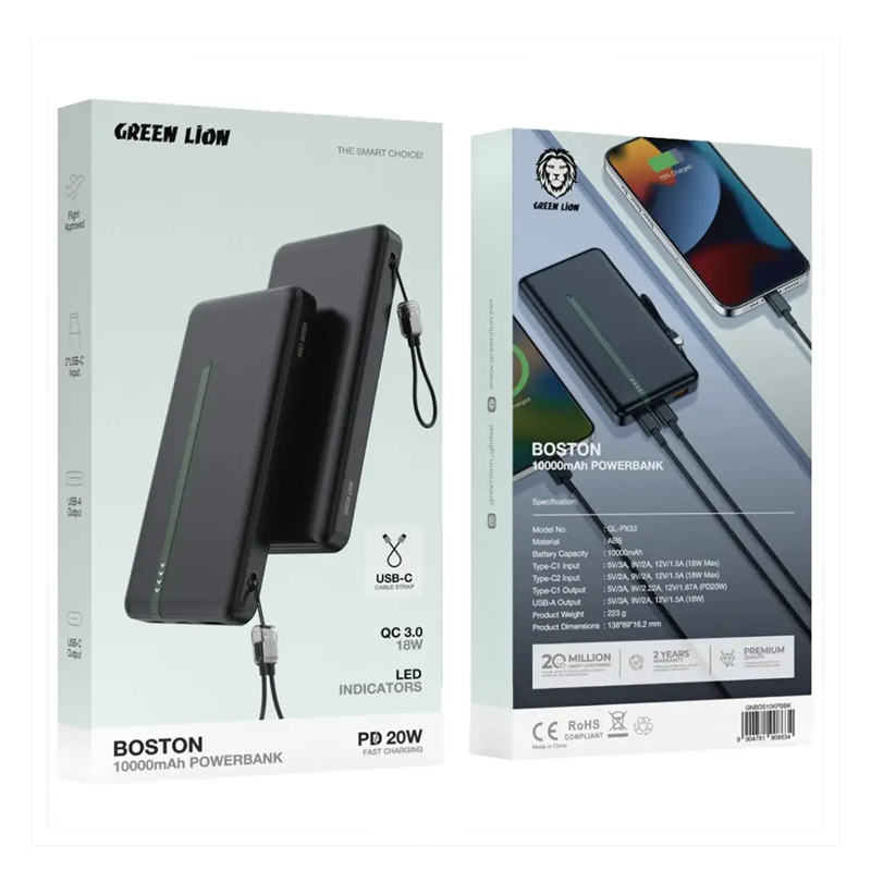 پاوربانک گرین لاین مدل Boston ظرفیت 10000 میلی آمپر ساعت